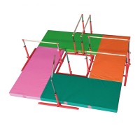 体育器材体操组合包括器械体操器械和艺术体操器械。常见的器械包括单杠、双杠、吊环、鞍马、蹦床、平衡木等,而艺术体操器械则包括绸、球、环、棒等。